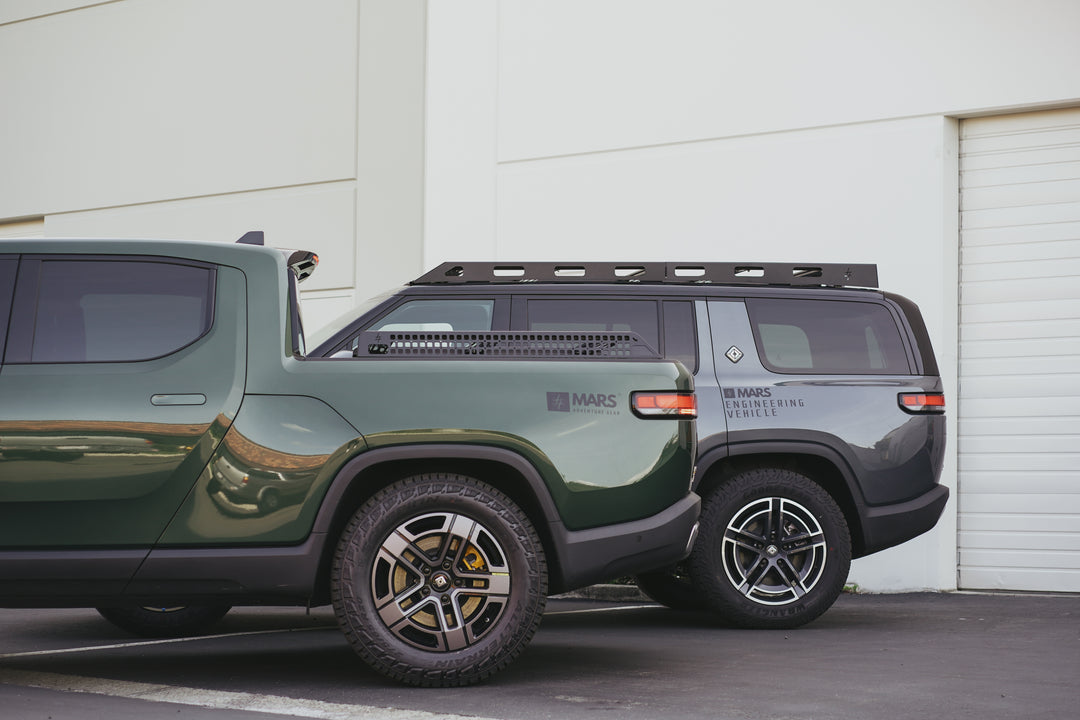Our Expedition Rack utilizes all six factory mounting points on the Rivian R1S, and the full system does the same for the Cybertruck. Based on the engineering and distribution, we believe the dynamic load rating far exceeds 330 lbs, with the static load rating estimated at approximately three times that amount. While the system is ideal for mounting rooftop tents, recovery gear, cargo boxes, and other overlanding essentials, please ensure that all loads are evenly distributed and securely fastened. All items are carried at your own risk. Mars Adventure Gear is not responsible for any damage to your vehicle or rack resulting from improper use or overloading.
